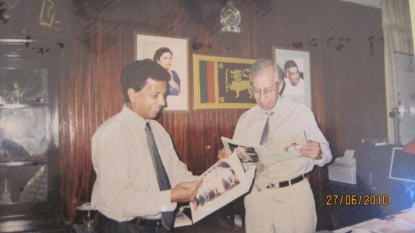 සංස්කාරක ලෙසින් මෙම ලියුම්කරු ,නව දැක්මකින් යුක්ත එම සඟරාවේ මුල්ම පිටපත,අග්රාමාත්ය ලේකම් බ්රෑඩ්මන් වීරකෝන් මහතා වෙත පිළිගැන්වූ අවස්ථාව.