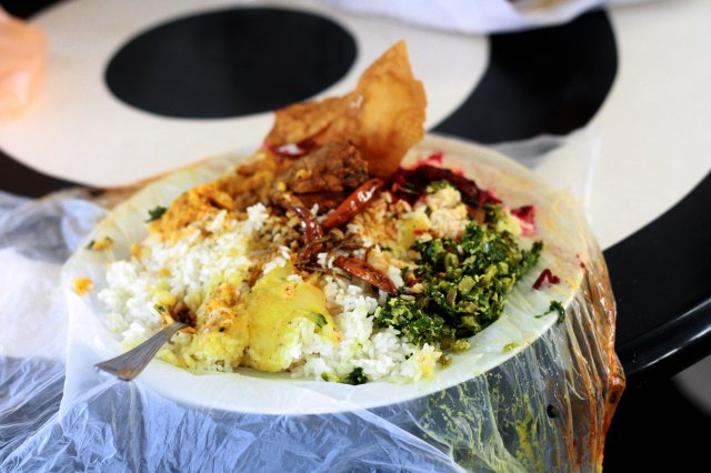 Mithuro Cafe is a really good one down Duplication Road. Besides rice and curry they also serve a whole bunch of very peppery, spicy short eats, and kottu in the evenings. The rice and curry here is totally worth it. We got the chicken packet and it comes with plenty of papadam, parippu, manioc, gotukola sambol and dry chillies. The chicken curry and parippu were especially good and I walloped the this big portion to my own surprise.