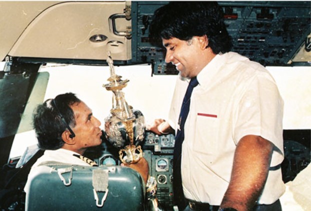 Captain Sunil Wettimuny, the elder brother of Sidath Wettimuny, flew the Sri Lankan team back home after their World Cup win in Lahore. Sunil played in the 1975 and 1979 World Cups and in fact scored Sri Lanka’s first ever half-century in an international encounter – against Australia at The Oval.