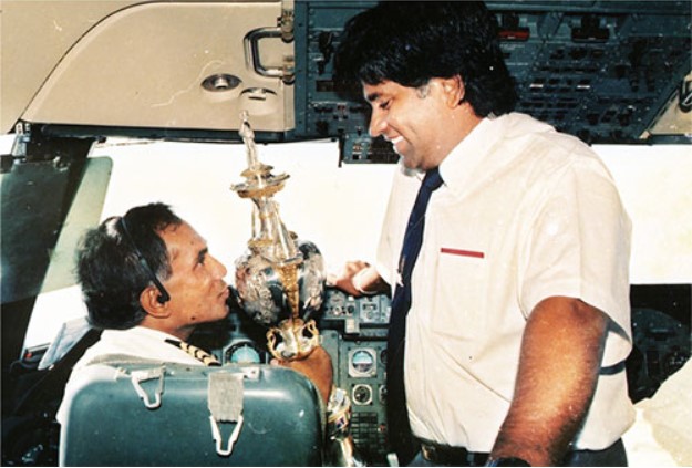 Captain Sunil Wettimuny, the elder brother of Sidath Wettimuny, flew the Sri Lankan team back home after their World Cup win in Lahore. Sunil played in the 1975 and 1979 World Cups and in fact scored Sri Lanka’s first ever half-century in an international encounter – against Australia at The Oval.
