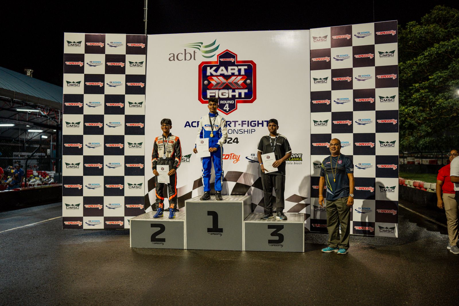 The ACBT Kart Fight Championship 2024 Round 4 was successfully hosted at SpeedBay, Bandaragama, under the management of David Pieris Racing & Leisure (Private) Limited, in partnership with ACBT, Australian College of Business & Technology, as the title partner. Special thanks to the unwavering dedication of all marshals and stewards involved in the event via the Ceylon Motor Sports Club and the Motor Racing Association.
