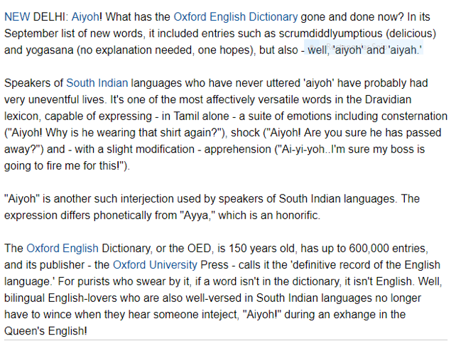 Nothing, really. Although this this “exclamation” is most popularly used in the South Indian State of Tamil Nadu, & Tamil-speaking parts of Sri Lanka, generally, also Malaysia & Singapore, believe it or not, the word originates from China. How it would actually be “written” in Chinese, I would not know, but what I do know is the fact that China, as a Country, would have very little reason to utter this quote, as their population seems to be growing twice as fast as any of the other Nations involved & they certainly know what to do (men), without us, from Sri Lanka providing the answer