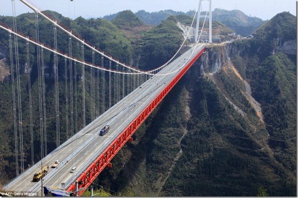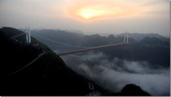 Construction took five years. Work finished at the end of last year, making it the world’s longest and highest suspension bridge.