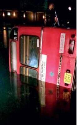 Bus falls into a pond at Parliament premises-By Yohan Perera