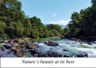 Kalu Ganga Meandering to Kalutara and the far banks filled with flora in all shades of green. From the beginning it is a well-laid buffet for the eyes. It is serene and silent. Only the birdcalls disturb the quietness. The skies put out a sheet of blue, dappled with various shapes of white clouds, dots of cirrus and dashes of stratus. The wind blows, soothing the soul. The world stands still as we row, just as nature intended.