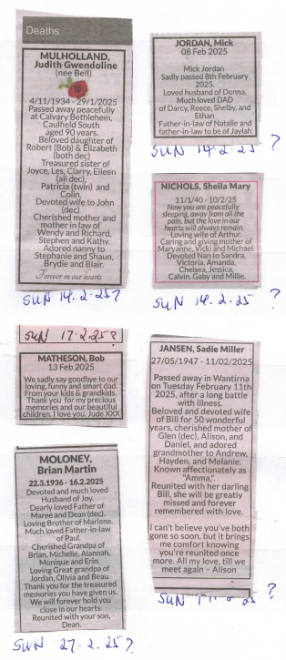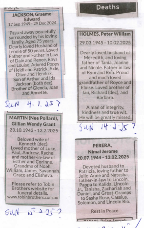 Obituaries CLASSIFIED NOTICES – FEBRUARY 2025 Last updated: March 2, 2025 5:53 pm By eLanka adminByeLanka admin Share 0 Min Read SHARE CLASSIFIED NOTICES – FEBRUARY 2025 Click here to receive your free copy of the eLanka Newsletter twice a week delivered directly to your inbox! TAGGED:CLASSIFIED NOTICES - FEBRUARY 2025 Share This Article Email Copy Link Print Previous Article Erstwhile Chums’ Fake Wrestling: A Theatrical Spectacle of Strength and Showmanship-by Kalani-eLanka Next Article Galway’s Land National Park, Sri Lanka FacebookLikeYoutubeSubscribeLinkedInFollow Most Read “A PICTURE SPEAKS A 1000 WORDS” – By Des Kelly A Life Hack for when we’re Burnt Out & Broken Down – By Uma Panch Narration of the History of our Proud Ancestral (Orang Jawa) Heritage. by Noor R. Rahim eLanka Marriage Proposals Noel News Noel News- By Noel Whittaker EILEEN MARY SIBELLE DE SILVA (nee DISSANAYAKE) – 29 September 1922 – 6 April 2018 – A Woman of Value an Appreciation written by Mohini Gunasekera K.K.S. Cement Factory Dr.Harold Gunatillake’s 90th Birthday party Cricket: Sri Lanka’s women’s squad in Melbourne - Advertisement -