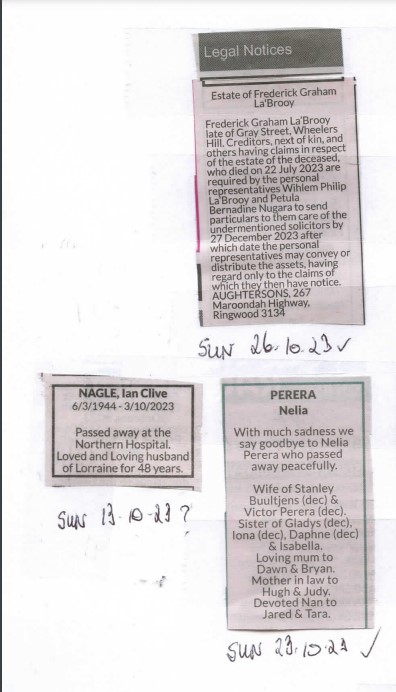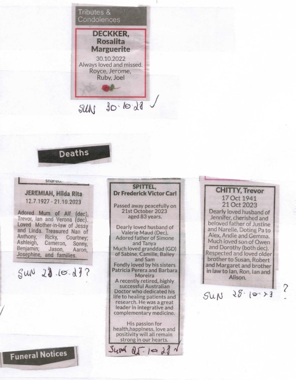 Obituaries CLASSIFIED NOTICES – OCTOBER 2023 Last updated: November 3, 2023 5:00 pm By eLanka adminByeLanka admin Share 0 Min Read SHARE CLASSIFIED NOTICES – OCTOBER 2023 TAGGED:CLASSIFIED NOTICES - OCTOBER 2023 Share This Article Email Copy Link Print Previous Article India rout Sri Lanka once more sending an ominous warning to the rest in the World Cup. – BY TREVINE RODRIGO IN MELBOURNE. (eLanka Sports editor). Next Article VACD Australia – Special Report on the Inauguration of our VACD Melbourne Chapter – October 2023 FacebookLikeYoutubeSubscribeLinkedInFollow Most Read “A PICTURE SPEAKS A 1000 WORDS” – By Des Kelly A Life Hack for when we’re Burnt Out & Broken Down – By Uma Panch Narration of the History of our Proud Ancestral (Orang Jawa) Heritage. by Noor R. Rahim eLanka Marriage Proposals Noel News Noel News- By Noel Whittaker EILEEN MARY SIBELLE DE SILVA (nee DISSANAYAKE) – 29 September 1922 – 6 April 2018 – A Woman of Value an Appreciation written by Mohini Gunasekera K.K.S. Cement Factory Dr.Harold Gunatillake’s 90th Birthday party Cricket: Sri Lanka’s women’s squad in Melbourne - Advertisement -