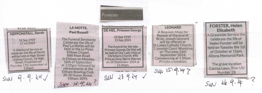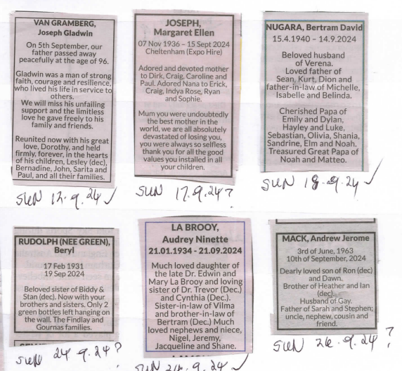 Obituaries CLASSIFIED NOTICES – SEPTEMBER 2024 Last updated: October 2, 2024 6:14 pm By eLanka adminByeLanka admin Share 0 Min Read SHARE CLASSIFIED NOTICES – SEPTEMBER 2024 Share This Article Email Copy Link Print Previous Article Ashley Chandrasinghe in Victoria’s Cricket Sights Next Article Journey Through Knuckles Mountain Range in Sri Lanka: Trails, Views & Village Experiences FacebookLikeYoutubeSubscribeLinkedInFollow Most Read “A PICTURE SPEAKS A 1000 WORDS” – By Des Kelly A Life Hack for when we’re Burnt Out & Broken Down – By Uma Panch Narration of the History of our Proud Ancestral (Orang Jawa) Heritage. by Noor R. Rahim eLanka Marriage Proposals Noel News Noel News- By Noel Whittaker EILEEN MARY SIBELLE DE SILVA (nee DISSANAYAKE) – 29 September 1922 – 6 April 2018 – A Woman of Value an Appreciation written by Mohini Gunasekera K.K.S. Cement Factory Dr.Harold Gunatillake’s 90th Birthday party Cricket: Sri Lanka’s women’s squad in Melbourne - Advertisement -