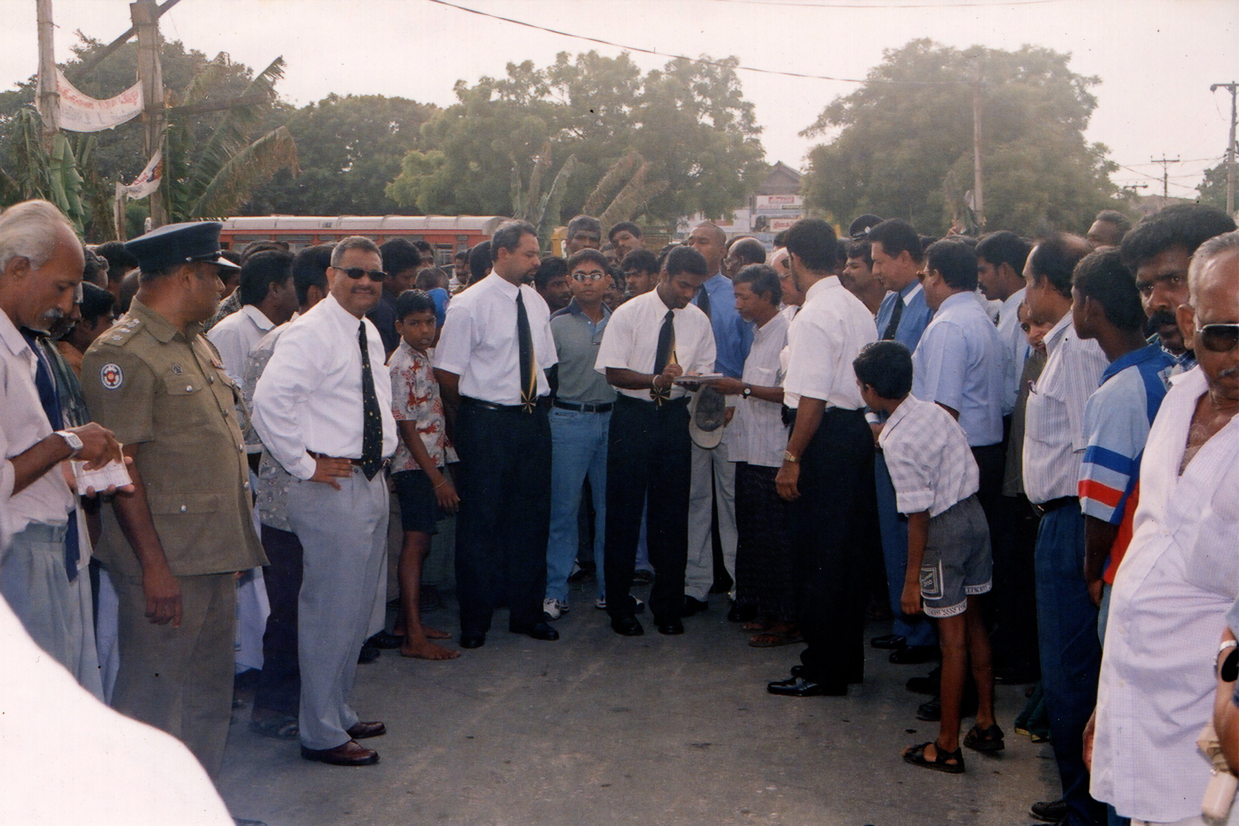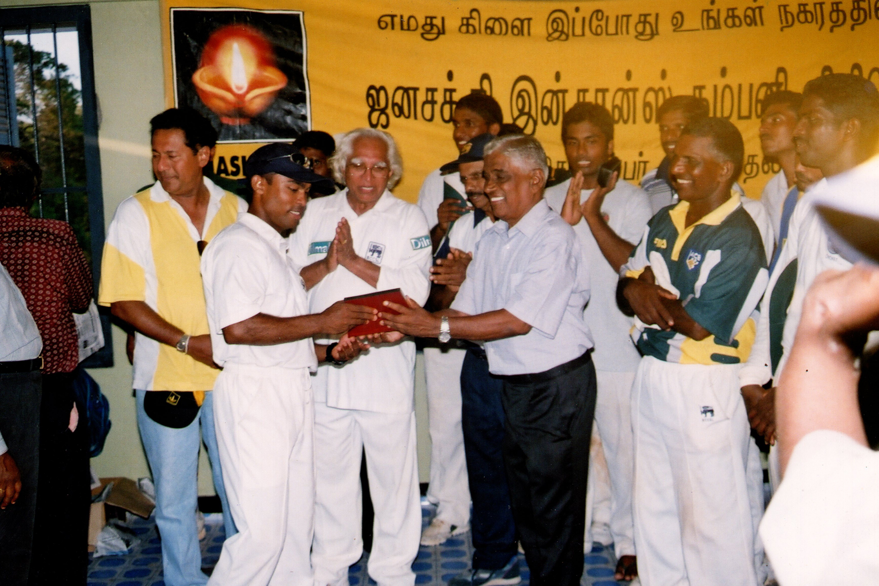 With Ranil Wickremesinghe becoming Prime Minister in 2001, a ceasefire agreement was negotiated with the LTTE and the A9 was opened after many years. Janashakthi took the opportunity to open its Jaffna branch in August Because of our association with cricket, we felt that the best way would be to stage a cricket match which would bring the enthusiastic cricket fans in Jaffna out of their homes. It was a major rush but my son Ramesh,who was adept at such events, began organizing the match as well as the opening of the branch. I had just returned to Sri Lanka after managing the cricket team in the UK and I had agreed with a team of about 15 of the cricketers to go up to Jaffna in a special bus and play a match – not so much for cricket per se but in order to create an impression in Jaffna.