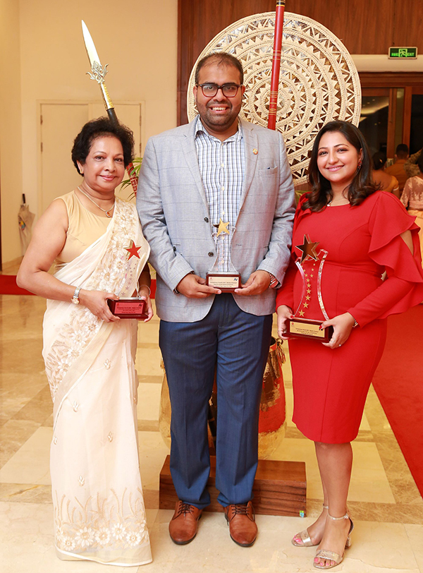 Christell 1: Prof. Ramani Arsecularatne and Dr. Shanika Arsecularatne receive the Best Enterprise service sector trophy