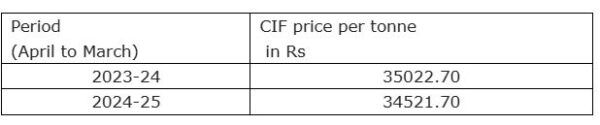 CIF price trend of imported methanol : Around Rs.25 per kg