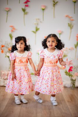 Our dress-making process is a blend of tradition and modernity. It begins with the careful selection of luxurious fabrics, followed by intricate handsmocking and hand embroidery. Each dress features delicate designs, such as dark pink rabbits and rosebuds on our Pink Turkish Delight Dress, making every piece unique and special. Designed for a variety of occasions – from birthdays and Christmas celebrations to Eid festivities and family photoshoots – our dresses are not only garments but works of art that can be cherished for generations.