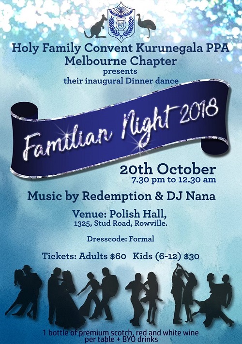 FAMILIAN NIGHT 2018 Last updated: September 28, 2018 5:41 am By eLanka adminByeLanka admin Share 0 Min Read SHARE FAMILIAN NIGHT 2018 20th October 7.30pm to 12.30 am Miusic by Redemption & Dj nana Polish Hall, 1325,Stud Road, Rowville Share This Article Email Copy Link Print Previous Article TRIBUTE CONCERT FOR MILTON MALLAWRACHCHI Next Article HOST THEIR ANNUAL DANCE Leave a Comment Leave a ReplyYou must be logged in to post a comment. FacebookLikeYoutubeSubscribeLinkedInFollow Most Read “A PICTURE SPEAKS A 1000 WORDS” – By Des Kelly A Life Hack for when we’re Burnt Out & Broken Down – By Uma Panch Narration of the History of our Proud Ancestral (Orang Jawa) Heritage. by Noor R. Rahim eLanka Marriage Proposals Noel News Noel News- By Noel Whittaker EILEEN MARY SIBELLE DE SILVA (nee DISSANAYAKE) – 29 September 1922 – 6 April 2018 – A Woman of Value an Appreciation written by Mohini Gunasekera K.K.S. Cement Factory Dr.Harold Gunatillake’s 90th Birthday party Cricket: Sri Lanka’s women’s squad in Melbourne - Advertisement -