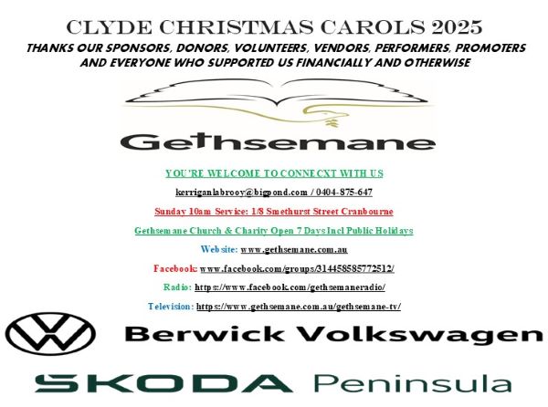GETHSEMANE CHURCH PRESENTS – 2025 CLYDE CAROLS BY CANDLELIGHT – 13th December – 4.30PM to 8.30 PM