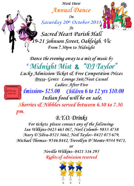 HOST THEIR ANNUAL DANCE Last updated: September 28, 2018 6:11 am By eLanka adminByeLanka admin Share 0 Min Read SHARE HOST THEIR ANNUAL DANCE Saturday 20th October 2018 Sacred Heart Parish Hall, 19-21 Johnson Stret, Oakleigh,Vic 7.30pm to Midnight Contact : Noel Colombo – 9833 4738 Neil tayalor – 0422 075 9471 Share This Article Email Copy Link Print Previous Article FAMILIAN NIGHT 2018 Next Article EXCLUSIVE GALA DINNER BALL 2018 Leave a Comment Leave a ReplyYou must be logged in to post a comment. FacebookLikeYoutubeSubscribeLinkedInFollow Most Read “A PICTURE SPEAKS A 1000 WORDS” – By Des Kelly A Life Hack for when we’re Burnt Out & Broken Down – By Uma Panch Narration of the History of our Proud Ancestral (Orang Jawa) Heritage. by Noor R. Rahim eLanka Marriage Proposals Noel News Noel News- By Noel Whittaker EILEEN MARY SIBELLE DE SILVA (nee DISSANAYAKE) – 29 September 1922 – 6 April 2018 – A Woman of Value an Appreciation written by Mohini Gunasekera K.K.S. Cement Factory Dr.Harold Gunatillake’s 90th Birthday party Cricket: Sri Lanka’s women’s squad in Melbourne - Advertisement -