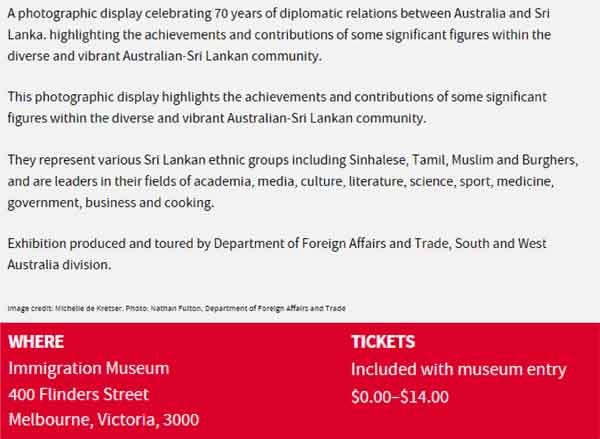 The exhibition of Images of Sri Lankan Australians organised by DFAT in