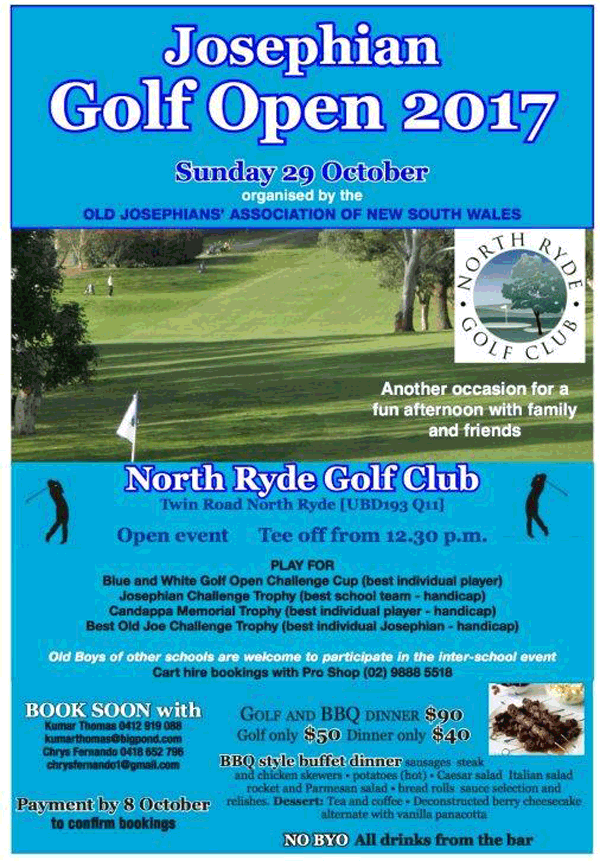 Josephian Golf Open 2017 Last updated: August 29, 2017 11:12 am By admin Share 0 Min Read SHARE Josephian Golf Open 2017 Share This Article Email Copy Link Print Previous Article A Heritage of Song Book 2 Next Article Thomian Carol Service FacebookLikeYoutubeSubscribeLinkedInFollow Most Read “A PICTURE SPEAKS A 1000 WORDS” – By Des Kelly A Life Hack for when we’re Burnt Out & Broken Down – By Uma Panch Narration of the History of our Proud Ancestral (Orang Jawa) Heritage. by Noor R. Rahim eLanka Marriage Proposals Noel News Noel News- By Noel Whittaker EILEEN MARY SIBELLE DE SILVA (nee DISSANAYAKE) – 29 September 1922 – 6 April 2018 – A Woman of Value an Appreciation written by Mohini Gunasekera K.K.S. Cement Factory Dr.Harold Gunatillake’s 90th Birthday party Cricket: Sri Lanka’s women’s squad in Melbourne - Advertisement -