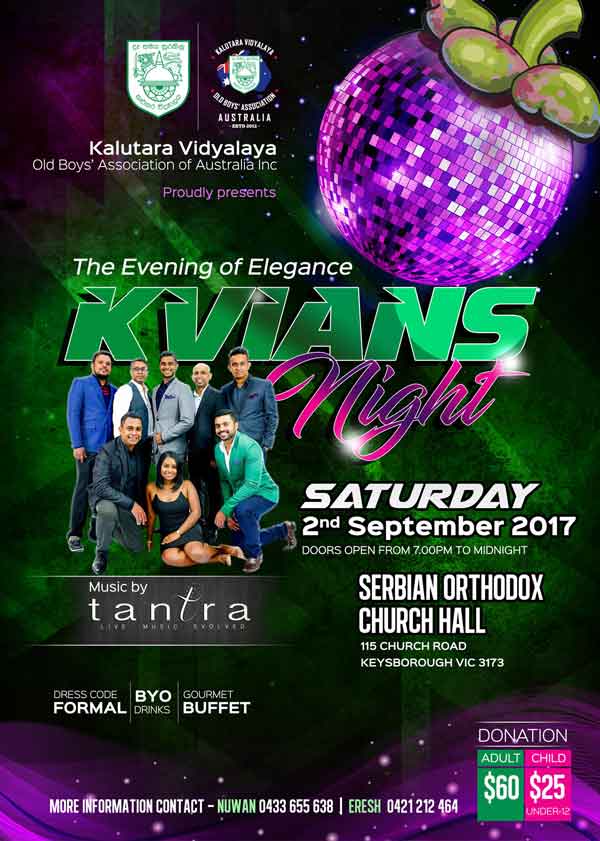 Kaluthara Vidyalaya Proudly Presents The Evening of Elegance KVIANS Night Last updated: May 11, 2017 8:23 am By admin Share 0 Min Read SHARE Kaluthara Vidyalaya Proudly Presents The Evening of Elegance KVIANS Night Share This Article Email Copy Link Print Previous Article Wesley College Colombo OBU (Aust) Inc. presents Winter Warm Up Next Article NIMSARA – Music Concert FacebookLikeYoutubeSubscribeLinkedInFollow Most Read “A PICTURE SPEAKS A 1000 WORDS” – By Des Kelly A Life Hack for when we’re Burnt Out & Broken Down – By Uma Panch Narration of the History of our Proud Ancestral (Orang Jawa) Heritage. by Noor R. Rahim eLanka Marriage Proposals Noel News Noel News- By Noel Whittaker EILEEN MARY SIBELLE DE SILVA (nee DISSANAYAKE) – 29 September 1922 – 6 April 2018 – A Woman of Value an Appreciation written by Mohini Gunasekera K.K.S. Cement Factory Dr.Harold Gunatillake’s 90th Birthday party Cricket: Sri Lanka’s women’s squad in Melbourne - Advertisement -