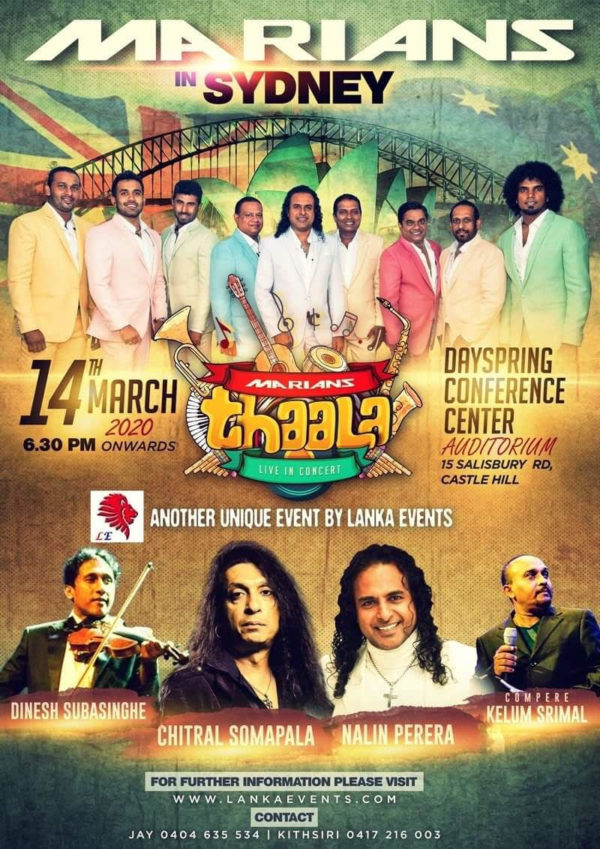 MARIANS Dance Concert – Thaala (Sydney event) Last updated: December 25, 2019 4:36 pm By eLanka adminByeLanka admin Share 0 Min Read SHARE MARIANS Dance Concert – Thaala (Sydney event) 14th March 2020 6.30 pm Onwords More Read Anandians in NSW proudly presents – “THAALA” – 2019 Blockbuster Film in Sri Lanka on 18th May Sydney SINHALA MOVIE, “Thaala” @Dayspring Conference Centre Share This Article Email Copy Link Print Previous Article Illusions – Presented by St. Peter’s College Old Boys Social Club Melbourne Inc – Annual Dinner Dance Next Article Royal -Thomian Cricket encounter in Sydney Leave a Comment Leave a ReplyYou must be logged in to post a comment. FacebookLikeYoutubeSubscribeLinkedInFollow Most Read “A PICTURE SPEAKS A 1000 WORDS” – By Des Kelly A Life Hack for when we’re Burnt Out & Broken Down – By Uma Panch Narration of the History of our Proud Ancestral (Orang Jawa) Heritage. by Noor R. Rahim eLanka Marriage Proposals Noel News Noel News- By Noel Whittaker EILEEN MARY SIBELLE DE SILVA (nee DISSANAYAKE) – 29 September 1922 – 6 April 2018 – A Woman of Value an Appreciation written by Mohini Gunasekera K.K.S. Cement Factory Dr.Harold Gunatillake’s 90th Birthday party Cricket: Sri Lanka’s women’s squad in Melbourne - Advertisement -