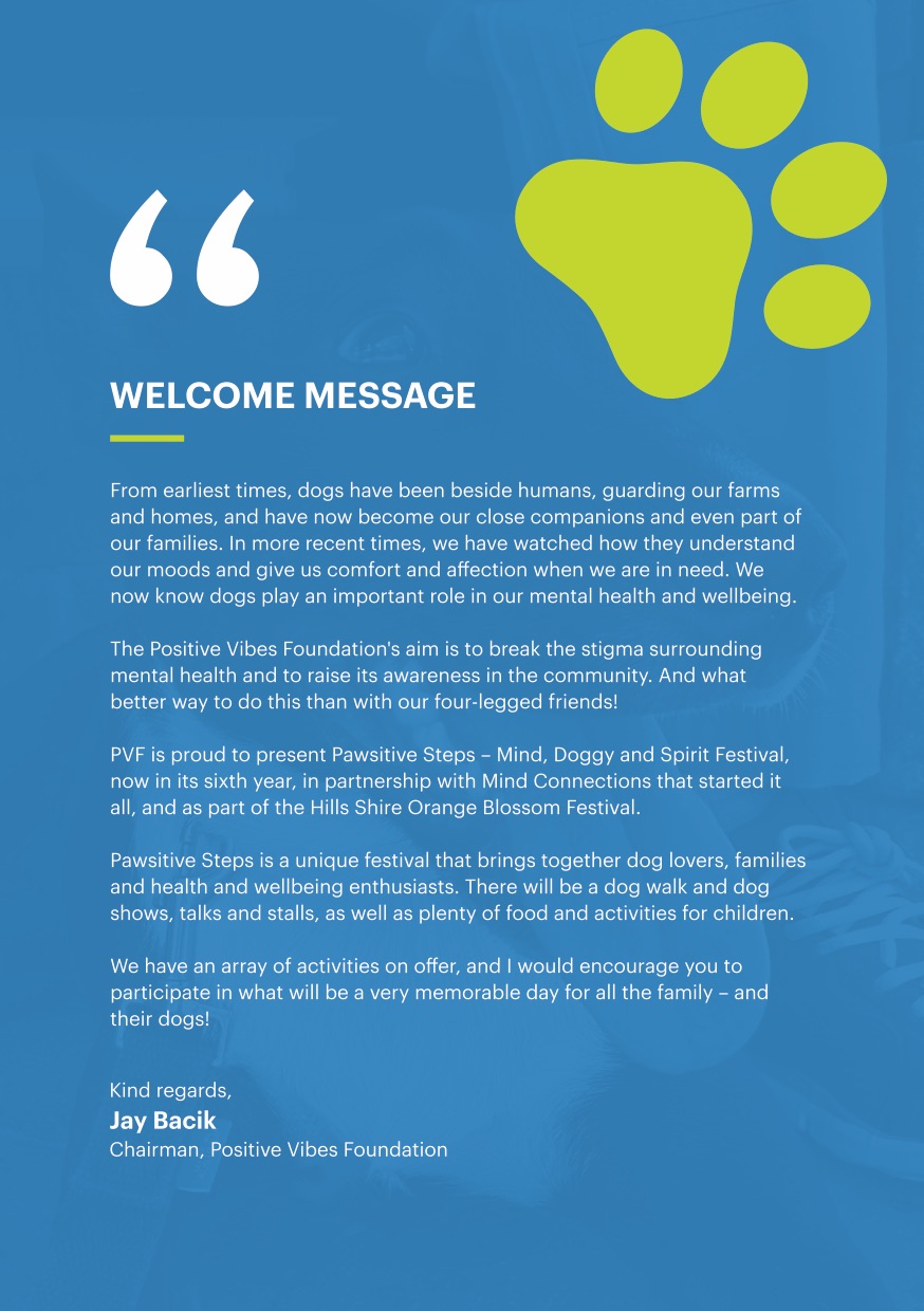 Mind Connections and Positive Vibes Foundation presents Pawsitive – steps towards mental health – Mind, Doggy and Spirit festival (Sunday 29th September 2019) – Sydney (Castle Hill) event