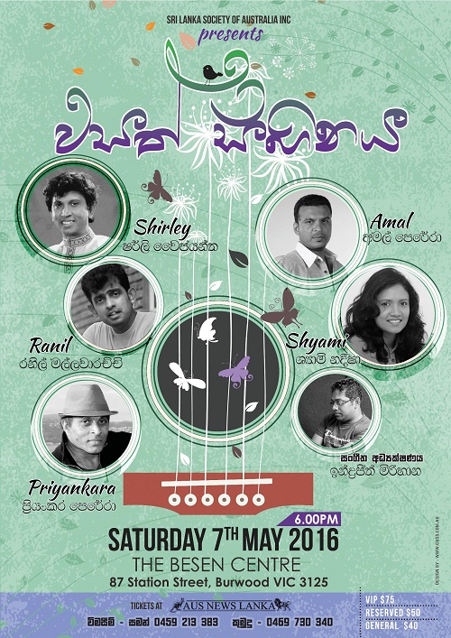 Music Concert – Wasath Sihinaya Last updated: May 4, 2016 11:01 am By admin Share 0 Min Read SHARE Music Concert – Wasath Sihinaya Share This Article Email Copy Link Print Previous Article “DEEZONE” with DAMIAN Next Article Appeal for HARSHINI FacebookLikeYoutubeSubscribeLinkedInFollow Most Read “A PICTURE SPEAKS A 1000 WORDS” – By Des Kelly A Life Hack for when we’re Burnt Out & Broken Down – By Uma Panch Narration of the History of our Proud Ancestral (Orang Jawa) Heritage. by Noor R. Rahim eLanka Marriage Proposals Noel News Noel News- By Noel Whittaker EILEEN MARY SIBELLE DE SILVA (nee DISSANAYAKE) – 29 September 1922 – 6 April 2018 – A Woman of Value an Appreciation written by Mohini Gunasekera K.K.S. Cement Factory Dr.Harold Gunatillake’s 90th Birthday party Cricket: Sri Lanka’s women’s squad in Melbourne - Advertisement -