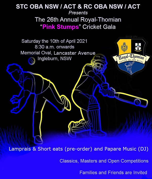 STC OBA NSW / ACT & RC OBA NSW / ACT presents The 26th Annual Royal-Thomian “Pink Stumps” Cricket Gala