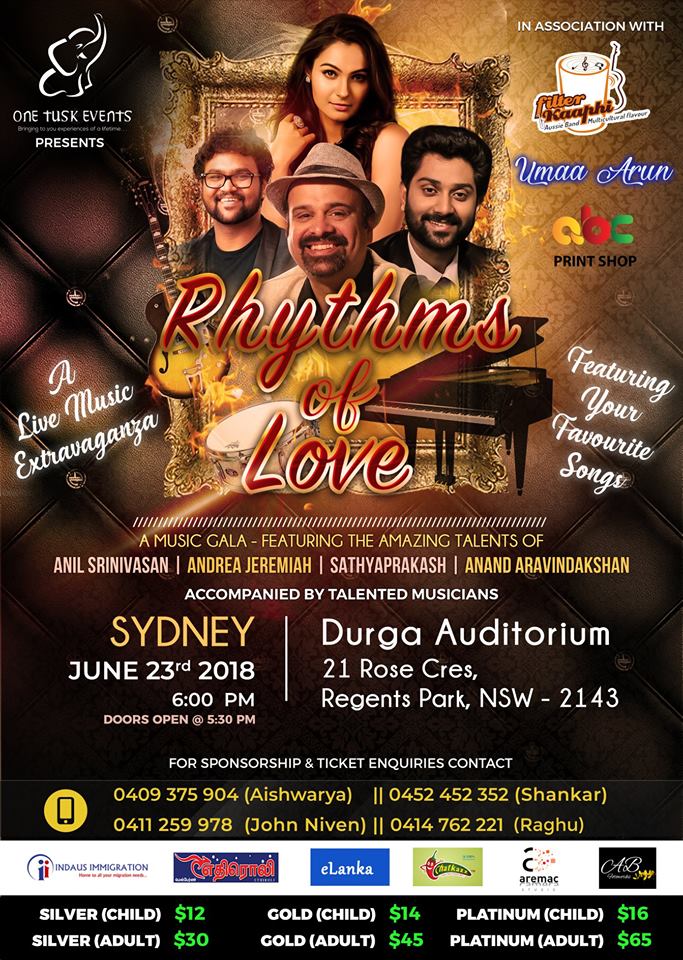 Rhythms of Love – A Music Gala – 23rd June 2018 (Sydney event)