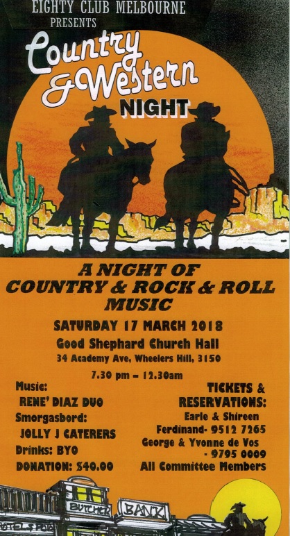Eighty Club Melbourne Presents Country & Western Night – A Night of Country & Rock & Roll Music