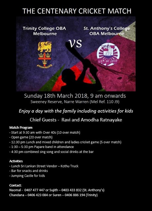 The Centenary Cricket Match – Trinity College OBA Mebourne vs St Anthony’s College OBA Melbourne