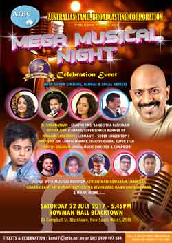 Australian Tamil Broadcasting Corporation Proudly presents Mega Musical Night