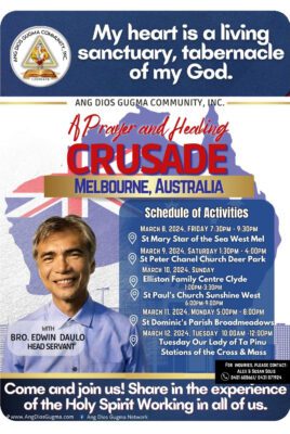 PRAYER & HEALING CRUSADE-MELBOURNE EVENT-MARCH 10,2024 Last updated: March 6, 2024 5:59 pm By eLanka adminByeLanka admin Share 0 Min Read SHARE PRAYER & HEALING CRUSADE-MELBOURNE EVENT-MARCH 9,2024 March 10,2024,Sunday 6.00PM-9.00PM @St Paul’s Church Sunshine west Share This Article Email Copy Link Print Previous Article PRAYER & HEALING CRUSADE-MELBOURNE EVENT-MARCH 10,2024 Next Article PRAYER & HEALING CRUSADE-MELBOURNE EVENT-MARCH 11,2024 FacebookLikeYoutubeSubscribeLinkedInFollow Most Read “A PICTURE SPEAKS A 1000 WORDS” – By Des Kelly A Life Hack for when we’re Burnt Out & Broken Down – By Uma Panch Narration of the History of our Proud Ancestral (Orang Jawa) Heritage. by Noor R. Rahim eLanka Marriage Proposals Noel News Noel News- By Noel Whittaker EILEEN MARY SIBELLE DE SILVA (nee DISSANAYAKE) – 29 September 1922 – 6 April 2018 – A Woman of Value an Appreciation written by Mohini Gunasekera K.K.S. Cement Factory Dr.Harold Gunatillake’s 90th Birthday party Cricket: Sri Lanka’s women’s squad in Melbourne - Advertisement -