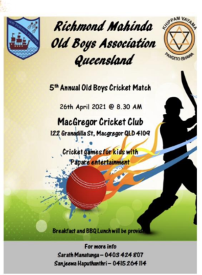 Richmond Mahinda Old Boys Association Queensland – 6th Annual Old Boys Cricket Match – 3rd April 2022 (Brisbane event)