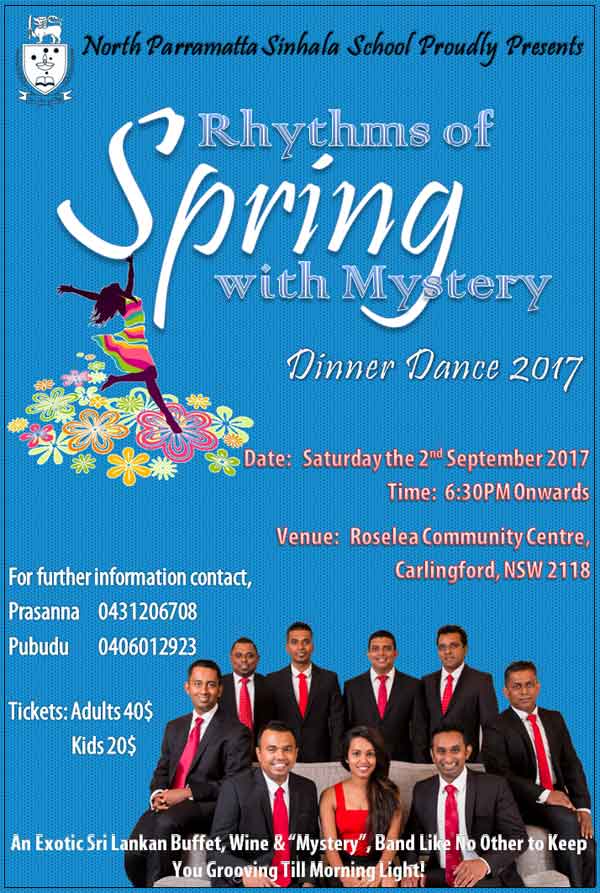Rythms of Spring with Mystery Dinner Dance 2017 Last updated: May 3, 2017 6:23 am By admin Share 0 Min Read SHARE Rythms of Spring with Mystery Dinner Dance 2017 Share This Article Email Copy Link Print Previous Article AUTUMN BREEZE – Dinner Dance Next Article Voluntary Outreach Club Presents New Year’s Eve Ball 2017 FacebookLikeYoutubeSubscribeLinkedInFollow Most Read “A PICTURE SPEAKS A 1000 WORDS” – By Des Kelly A Life Hack for when we’re Burnt Out & Broken Down – By Uma Panch Narration of the History of our Proud Ancestral (Orang Jawa) Heritage. by Noor R. Rahim eLanka Marriage Proposals Noel News Noel News- By Noel Whittaker EILEEN MARY SIBELLE DE SILVA (nee DISSANAYAKE) – 29 September 1922 – 6 April 2018 – A Woman of Value an Appreciation written by Mohini Gunasekera K.K.S. Cement Factory Dr.Harold Gunatillake’s 90th Birthday party Cricket: Sri Lanka’s women’s squad in Melbourne - Advertisement -