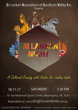 Sri Lanka Festival – 2017 Last updated: November 1, 2017 6:39 am By admin Share 0 Min Read SHARE Download the PDF file . Share This Article Email Copy Link Print Previous Article Srilankan Association of Goulburn Valley Inc Presents Sri Lankan Night Next Article White Wonderland New Year’s eve Dance FacebookLikeYoutubeSubscribeLinkedInFollow Most Read “A PICTURE SPEAKS A 1000 WORDS” – By Des Kelly A Life Hack for when we’re Burnt Out & Broken Down – By Uma Panch Narration of the History of our Proud Ancestral (Orang Jawa) Heritage. by Noor R. Rahim eLanka Marriage Proposals Noel News Noel News- By Noel Whittaker EILEEN MARY SIBELLE DE SILVA (nee DISSANAYAKE) – 29 September 1922 – 6 April 2018 – A Woman of Value an Appreciation written by Mohini Gunasekera K.K.S. Cement Factory Dr.Harold Gunatillake’s 90th Birthday party Cricket: Sri Lanka’s women’s squad in Melbourne - Advertisement -
