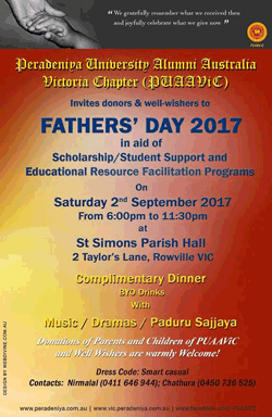 Sri Lankan Doctors Scientific Association Annual General Meeting And Gala Dinner Last updated: August 30, 2017 1:31 pm By admin Share 0 Min Read SHARE Sri Lankan Doctors Scientific Association Annual General Meeting And Gala Dinner Share This Article Email Copy Link Print Previous Article Peradeniya University Alumini Australia – Fathers’ Day 2017 Next Article Fr Dilan’s Fundraiser FacebookLikeYoutubeSubscribeLinkedInFollow Most Read “A PICTURE SPEAKS A 1000 WORDS” – By Des Kelly A Life Hack for when we’re Burnt Out & Broken Down – By Uma Panch Narration of the History of our Proud Ancestral (Orang Jawa) Heritage. by Noor R. Rahim eLanka Marriage Proposals Noel News Noel News- By Noel Whittaker EILEEN MARY SIBELLE DE SILVA (nee DISSANAYAKE) – 29 September 1922 – 6 April 2018 – A Woman of Value an Appreciation written by Mohini Gunasekera K.K.S. Cement Factory Dr.Harold Gunatillake’s 90th Birthday party Cricket: Sri Lanka’s women’s squad in Melbourne - Advertisement -