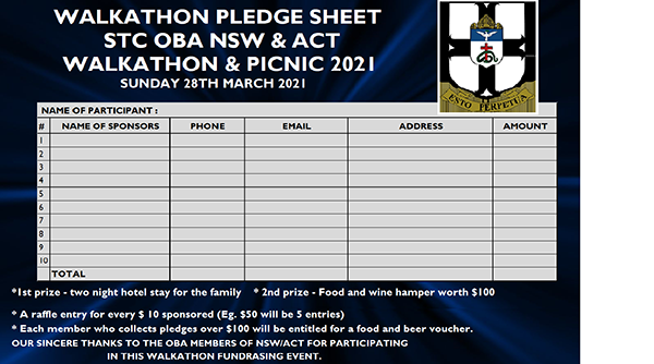 On behalf of STC OBA NSW & ACT, I wish to inform of its decision to postpone the Walkathon and Picnic day scheduled for Sunday 28 th of March, due to the prevailing weather conditions.