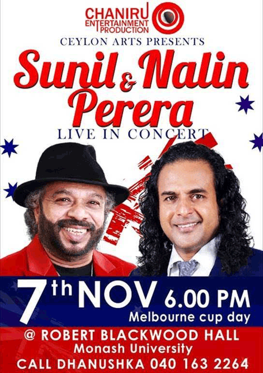 Sunil and Nalin Perera Live in Concert Last updated: September 25, 2017 7:14 pm By admin Share 0 Min Read SHARE Sunil and Nalin Perera Live in Concert Share This Article Email Copy Link Print Previous Article The Great Catsby Next Article Rahula Night 2017 FacebookLikeYoutubeSubscribeLinkedInFollow Most Read “A PICTURE SPEAKS A 1000 WORDS” – By Des Kelly A Life Hack for when we’re Burnt Out & Broken Down – By Uma Panch Narration of the History of our Proud Ancestral (Orang Jawa) Heritage. by Noor R. Rahim eLanka Marriage Proposals Noel News Noel News- By Noel Whittaker EILEEN MARY SIBELLE DE SILVA (nee DISSANAYAKE) – 29 September 1922 – 6 April 2018 – A Woman of Value an Appreciation written by Mohini Gunasekera K.K.S. Cement Factory Dr.Harold Gunatillake’s 90th Birthday party Cricket: Sri Lanka’s women’s squad in Melbourne - Advertisement -