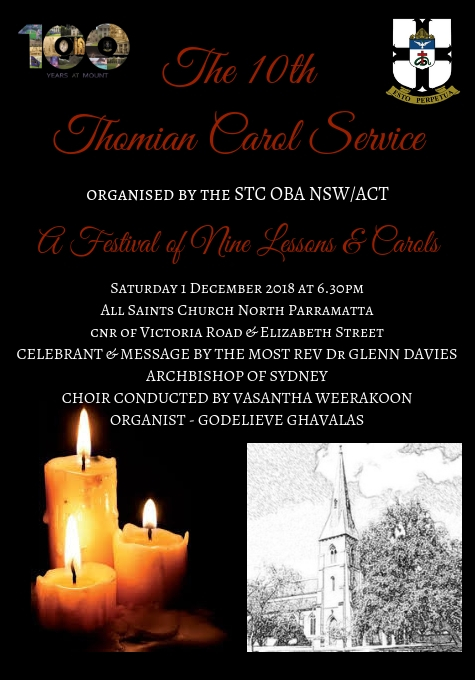The 10th Thomian Carol Service – Organised by the STC OBA NSW/ACT –