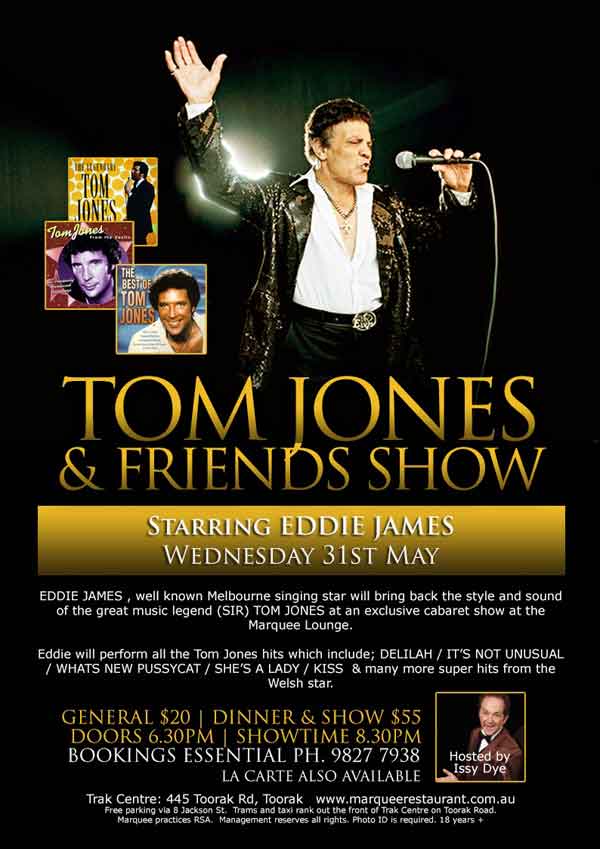 Tom Jones and Friends Show Last updated: April 4, 2017 10:36 am By admin Share 0 Min Read SHARE Tom Jones and Friends Show Tom Jones and Friends Show Starrring Eddie James Wednesday 31st May More Read Guru Geethaya – The Teacher’s Song | Special Film Screening – 08 November 2025 – Sydney, Australia The Sri Lankan Food – Take Away – Sunday the 9th of November 2025 – 11.00 AM To 3.00 PM ( Sydney Event ) Thomian Carol Service 2025 — A Festival of Nine Lessons & Carols Booking Essential BOOK in for a Great Night Out TOM JONES & FRIENDS SHOW at The MARQUEE CLUB –Toorak $20 Show only $55 Dinner & Show Share This Article Email Copy Link Print Previous Article A Night to Celebrate beyondblue Fund Raiser Dinner Dance Next Article The Book of Everything (Stage drama) – Adapted by Richard Tulloch From the novel by Guus Kuijer – Directed by Carol Wimmer FacebookLikeYoutubeSubscribeLinkedInFollow Most Read “A PICTURE SPEAKS A 1000 WORDS” – By Des Kelly A Life Hack for when we’re Burnt Out & Broken Down – By Uma Panch Narration of the History of our Proud Ancestral (Orang Jawa) Heritage. by Noor R. Rahim eLanka Marriage Proposals Noel News Noel News- By Noel Whittaker EILEEN MARY SIBELLE DE SILVA (nee DISSANAYAKE) – 29 September 1922 – 6 April 2018 – A Woman of Value an Appreciation written by Mohini Gunasekera K.K.S. Cement Factory Dr.Harold Gunatillake’s 90th Birthday party Cricket: Sri Lanka’s women’s squad in Melbourne - Advertisement -