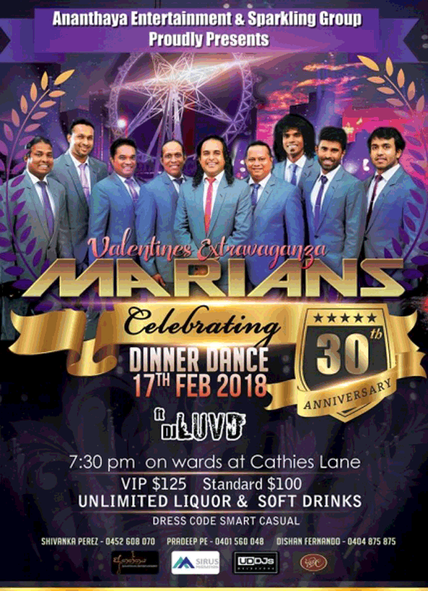 Valentines Extravaganza with Marians Last updated: February 6, 2018 6:53 am By admin Share 0 Min Read SHARE Valentines Extravaganza with Marians Share This Article Email Copy Link Print Previous Article Lankan Mega Blast Carnival Next Article Ran Roo – Brisbane Leave a Comment Leave a ReplyYou must be logged in to post a comment. FacebookLikeYoutubeSubscribeLinkedInFollow Most Read “A PICTURE SPEAKS A 1000 WORDS” – By Des Kelly A Life Hack for when we’re Burnt Out & Broken Down – By Uma Panch Narration of the History of our Proud Ancestral (Orang Jawa) Heritage. by Noor R. Rahim eLanka Marriage Proposals Noel News Noel News- By Noel Whittaker EILEEN MARY SIBELLE DE SILVA (nee DISSANAYAKE) – 29 September 1922 – 6 April 2018 – A Woman of Value an Appreciation written by Mohini Gunasekera K.K.S. Cement Factory Dr.Harold Gunatillake’s 90th Birthday party Cricket: Sri Lanka’s women’s squad in Melbourne - Advertisement -