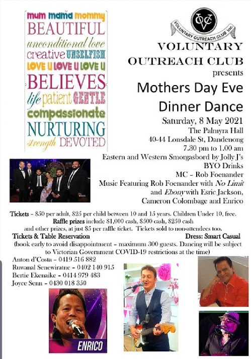Voluntary Outreach Club – Mothers Day Eve – Dinner Dance – 8 May 2021 (Melbourne event)