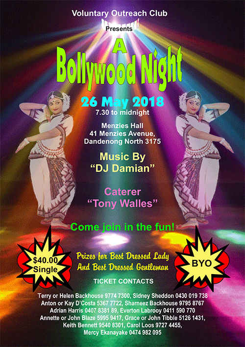 Voluntary Outreach Club Presents A Bollywood Night Last updated: April 3, 2018 9:22 am By admin Share 0 Min Read SHARE Voluntary Outreach Club Presents A Bollywood Night Share This Article Email Copy Link Print Previous Article An Evening with STEF D’Silva Next Article The VOC presents Another Trivia Afternoon Leave a Comment Leave a ReplyYou must be logged in to post a comment. FacebookLikeYoutubeSubscribeLinkedInFollow Most Read “A PICTURE SPEAKS A 1000 WORDS” – By Des Kelly A Life Hack for when we’re Burnt Out & Broken Down – By Uma Panch Narration of the History of our Proud Ancestral (Orang Jawa) Heritage. by Noor R. Rahim eLanka Marriage Proposals Noel News Noel News- By Noel Whittaker EILEEN MARY SIBELLE DE SILVA (nee DISSANAYAKE) – 29 September 1922 – 6 April 2018 – A Woman of Value an Appreciation written by Mohini Gunasekera K.K.S. Cement Factory Dr.Harold Gunatillake’s 90th Birthday party Cricket: Sri Lanka’s women’s squad in Melbourne - Advertisement -