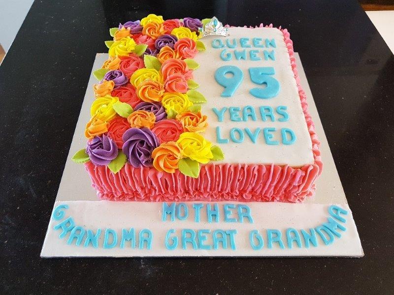 Gwen Pietersz (nee Bertus), the matriach of the Pietersz family, celebrated her 95th milestone birthday recently, choosing a private party in Ringwood to share with her heritage of four generations of Pieterszs. Her cake was a tribute to her long life and relationship with her family, the message reading, Queen Gwen, 95 Years Loved.