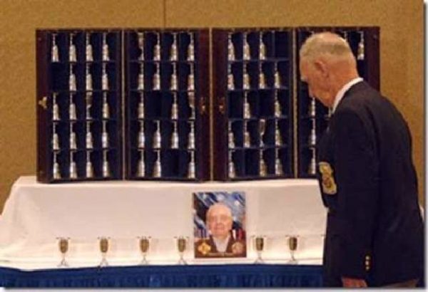 Each time a Raider passes away, his goblet is turned upside down in the case at the next reunion,