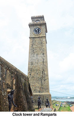 The Galle Clock Tower (or Dr Anthonisz Memorial Clock Tower) was built in the central moon bastion of Galle Fort, in 1883, and the clock was presented by Maha Mudaliyar Samson de Abrew Wijegunaratne Rajapakse of Kosgoda (1831- 1888) in appreciation of Dr PD Anthonisz, (1822 – 1903), who served as Colonial Surgeon in the Southern Province and had treated Maha Mudaliyar Rajapakse, a well-known philanthropist who donated three and a half acres of land in Colombo for the construction of Ceylon Medical College in 1875. The clock tower is 83 feet high and people could see the clock from the Galle town. The clock was made by John Moore and Sons, a well-known clock maker in London, in 1882.