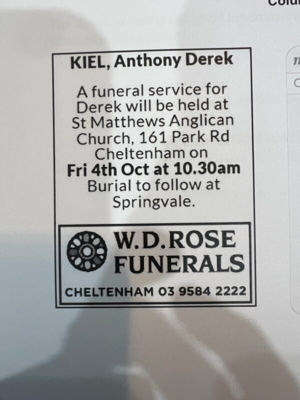 Much loved brother of Lorna (dec), Rosemary (dec), Trevor (dec), Marlene (dec), Noble, Christine, Jennifer and Treherne. He loved his family, his friends and his sports, Rugby, Cricket and Aussie rules Football. May he rest in peace.