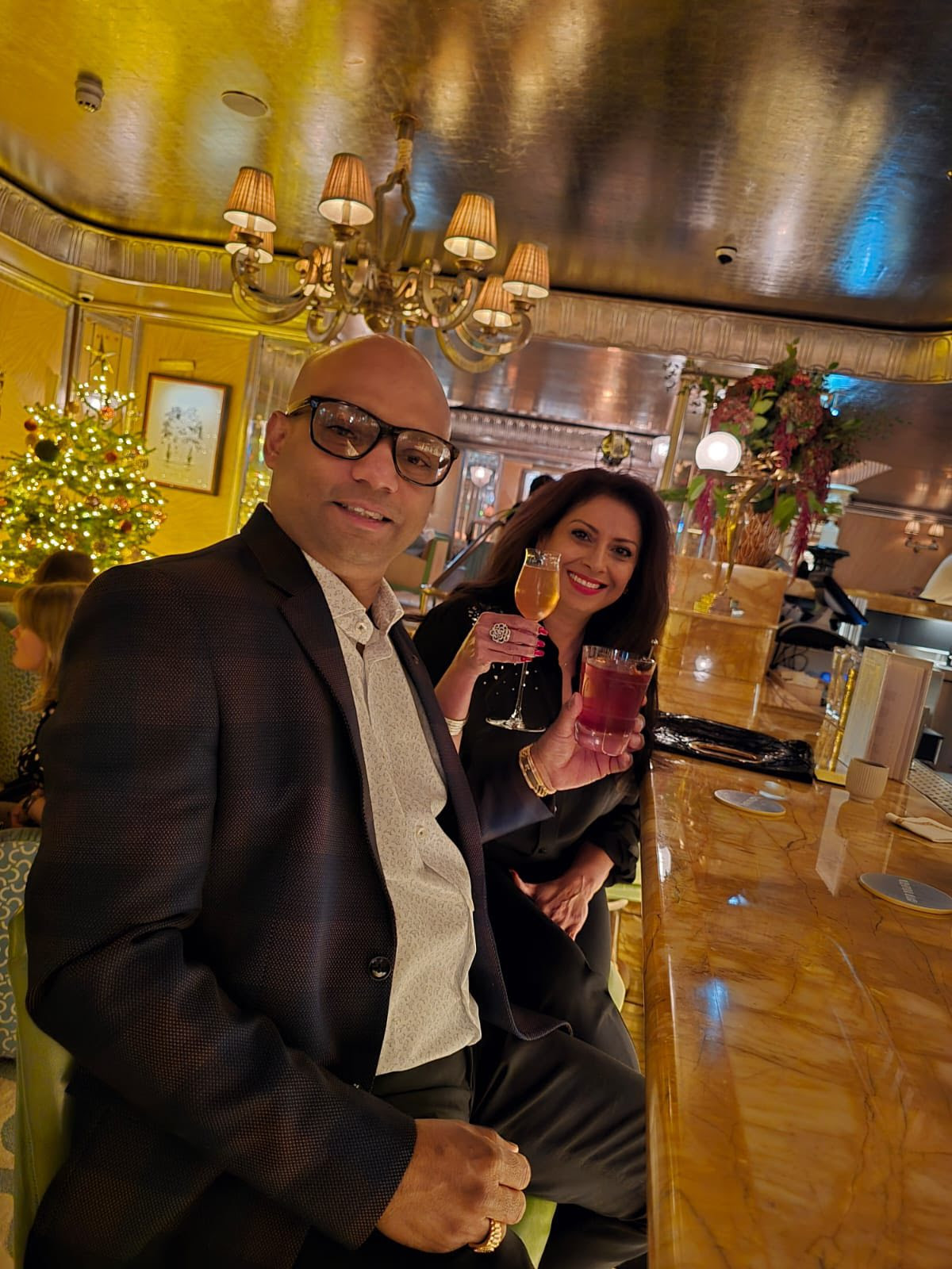 Sondra Wise of Stephenson Ranch and Shan Ravindranath had lunch at the famous Dorchester Hotel in Park Lane, London