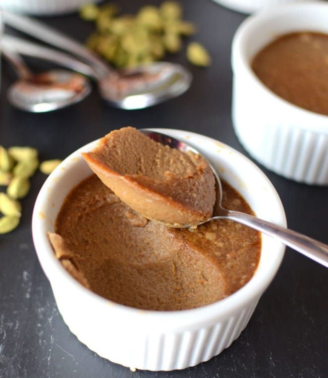 Put the mold in the refrigerator for 6- 8 hrs. to set. To unmold ease the sides of the souffle with a knife, turn over and gently tap the mold or place your hands on the mold for a few minutes and for the warmth of your hands the souffle will unmold. Decorate with roasted cadjunuts and cream.