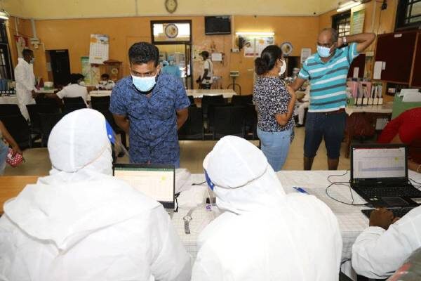 Inoculation of the China’s Sinopharm COVID-19 vaccine got underway for the first time in Sri Lanka today. People in Jinthupitiya, Colombo are seen queuing to get the vaccine at the Jinthupitiya, District 02 MOH office. The vaccine had been given to 150 individuals in the area. Pix by Nimalsiri Edirisinghe