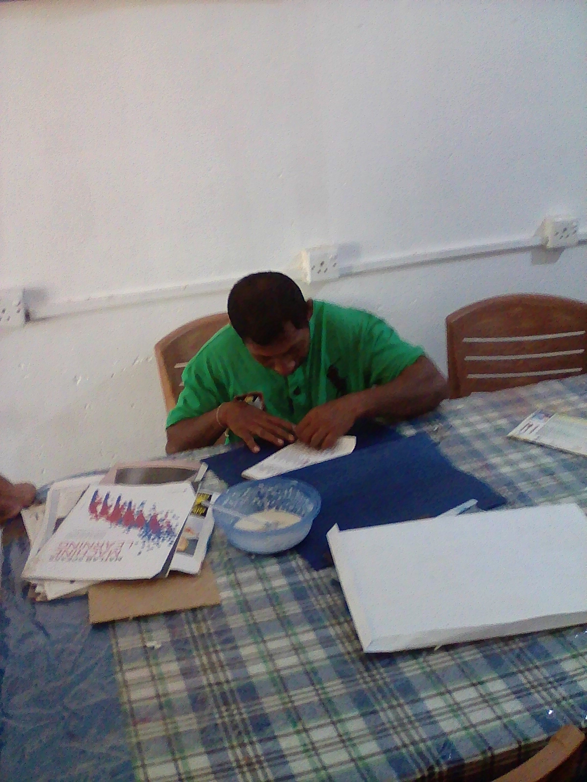 This is a young man named Naslak who is 37 years old and afflicted with cerebral palsy that renders him non-verbal …. what impressed me was his cheerful demeanour and industry in the occupational therapy-work he was engaged in …. a happy chappie